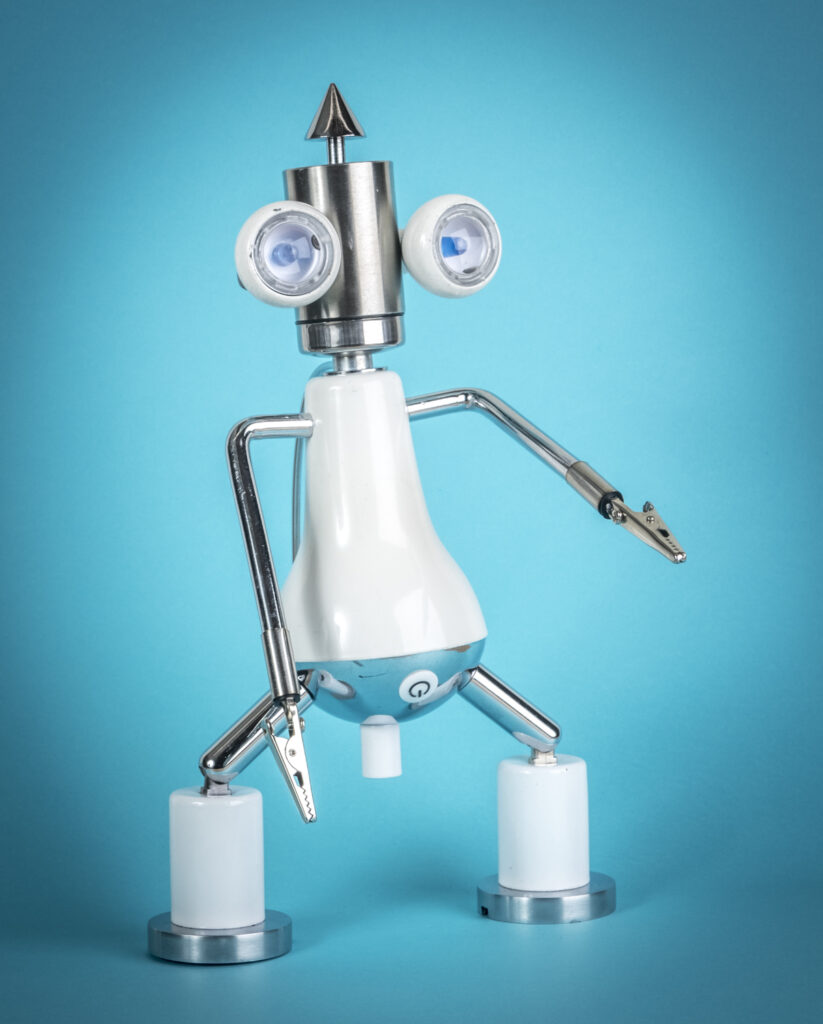 Avec Blanche, je renoue avec les robots de taille moyenne que je fabriquais à mes débuts (bon c’était il y a un an, c’est pas si vieux !). Après avoir réalisé de nombreux modèles aspect « tout métal », j’avais envie de varier un peu sur les matières. Profitant de quelques éléments intéressants dans mon bric-à-vrac, j’ai […]