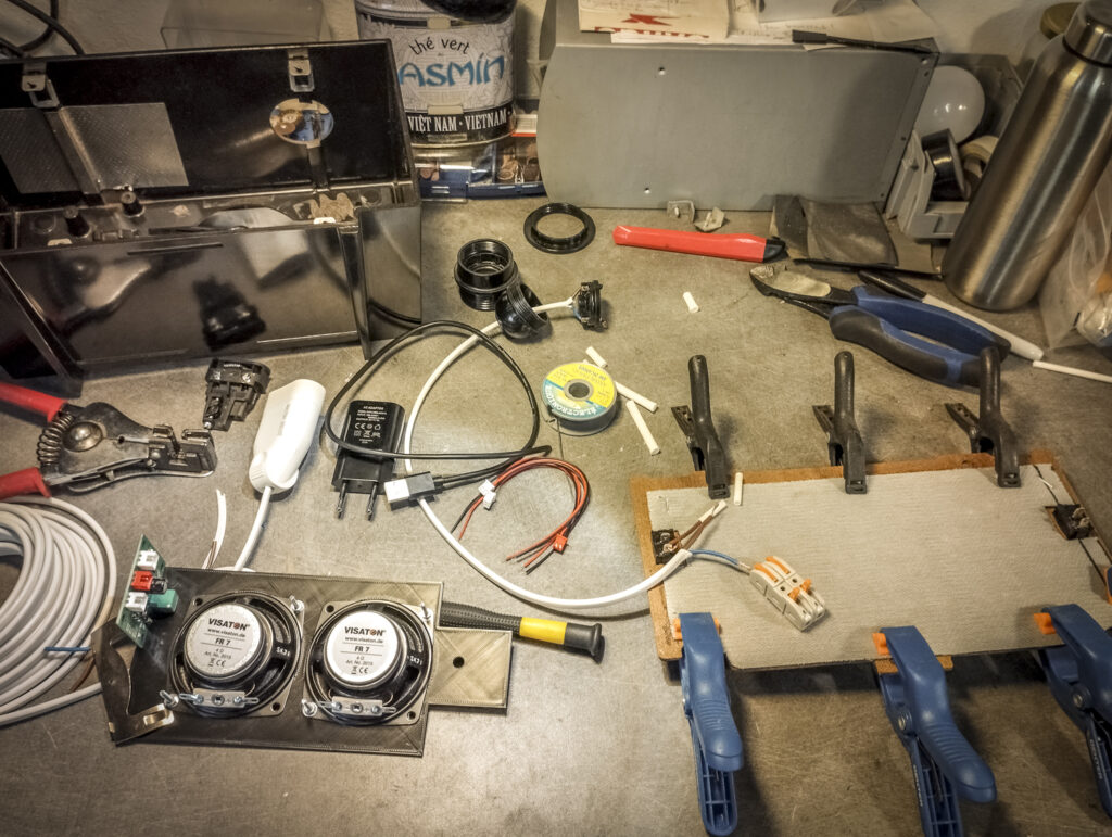 Notre petit Bilou, au nom choupinou fut autrefois une Stahl Box. Un nom un peu moins choupinou. Mais ça c’était avant. Après avoir bien galéré à retirer la chambre photographique, le boîtier tout en métal n’oppose guère de résistance à mon trépan prévu pour ce type de matériau fin et dur. Avec le métal, on […]