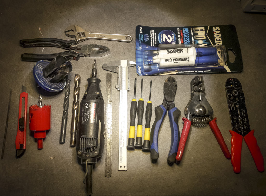 Aujourd’hui, je vous présente mes outils et accessoires de base. Ceux que j’utilise tout le temps pour la création de lampes. Il y a d’abord l’outillage : mesure, perçage (trépans et forêts), découpe, dénudage de câbles électriques, vissage, collage (résine époxy très solide) et l’indispensable Dremel, le couteau Suisse de tout bricoleur qui se respecte […]