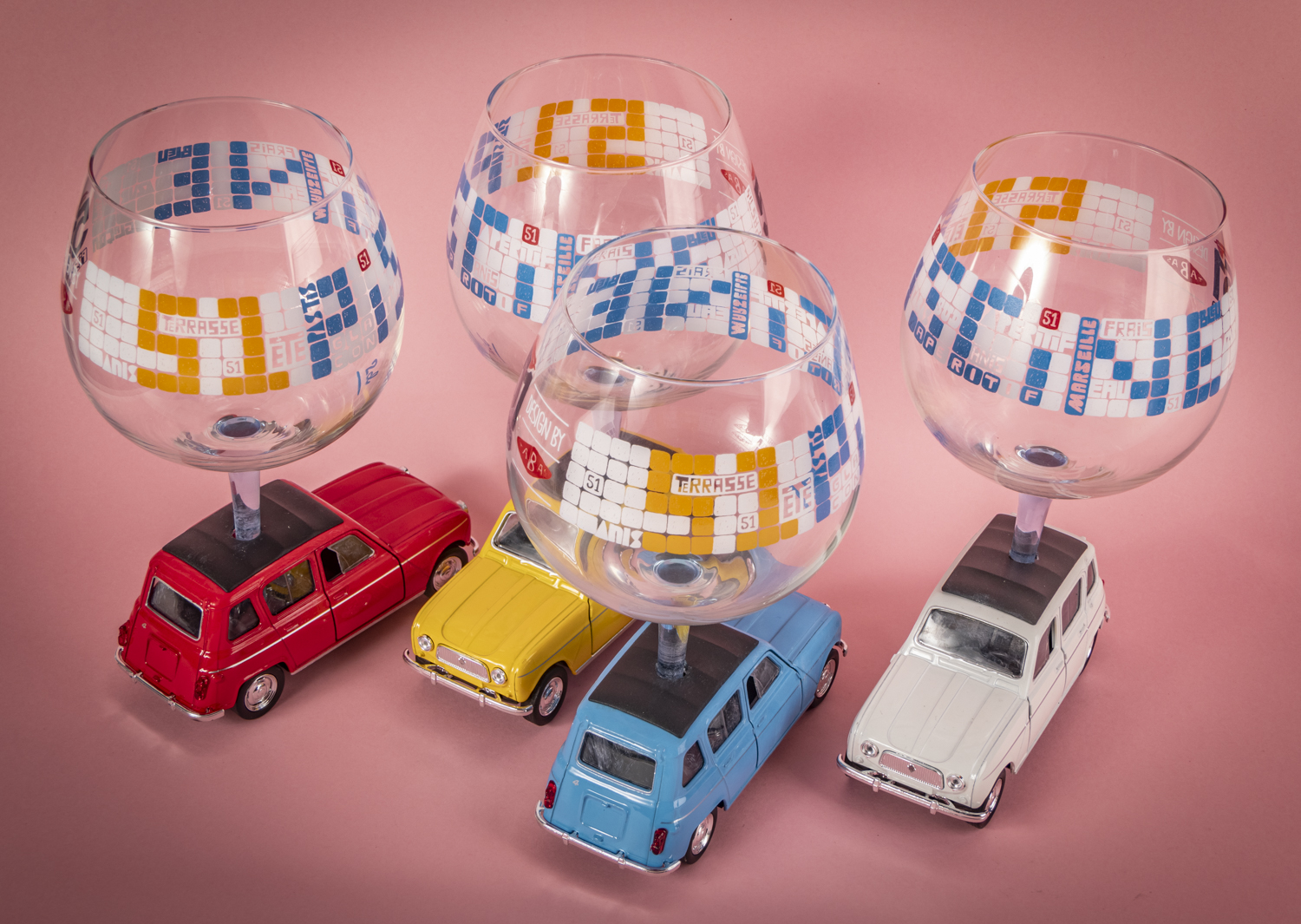 Afin d’arriver au Salon d’Art et Artisanat de la fin de l’année 2025 à Asnières, j’avais anticipé et procédé à un réassort assez considérable de verres voitures, une idée originale 100% Remixte ! Hormis le nouveau modèle de Coccinelle présenté pour cet événement, j’ai pu fabriquer 6 Mini Cooper/Gin Beefeater, un combo que je n’avais produit qu’en 6 exemplaires, partis depuis longtemps rouler leur bosse par monts et par vaux. En voici donc 6 de plus, en vert anglais et blanc. Et puis il y a aussi la franchouillarde 4L/Pastis Piscine. Malgré la rareté de plus en plus flagrante de ce verre collector sur le marché de l’occasion, j’ai quand même pu ajouter 8 exemplaires à cette série désormais classique (y-compris des coloris assez peu répandus comme le blanc et le rouge). Je ne compte plus mais il doit bien y en avoir une bonne vingtaine qui est partie depuis la première vague qui remonte déjà à octobre 2022 ! Alors voilà, si vous comptez boire ET conduire, sachez qu’avec Remixte, c’est plus que jamais possible !
